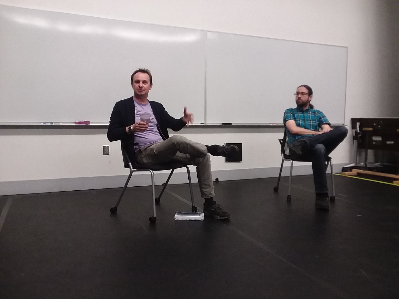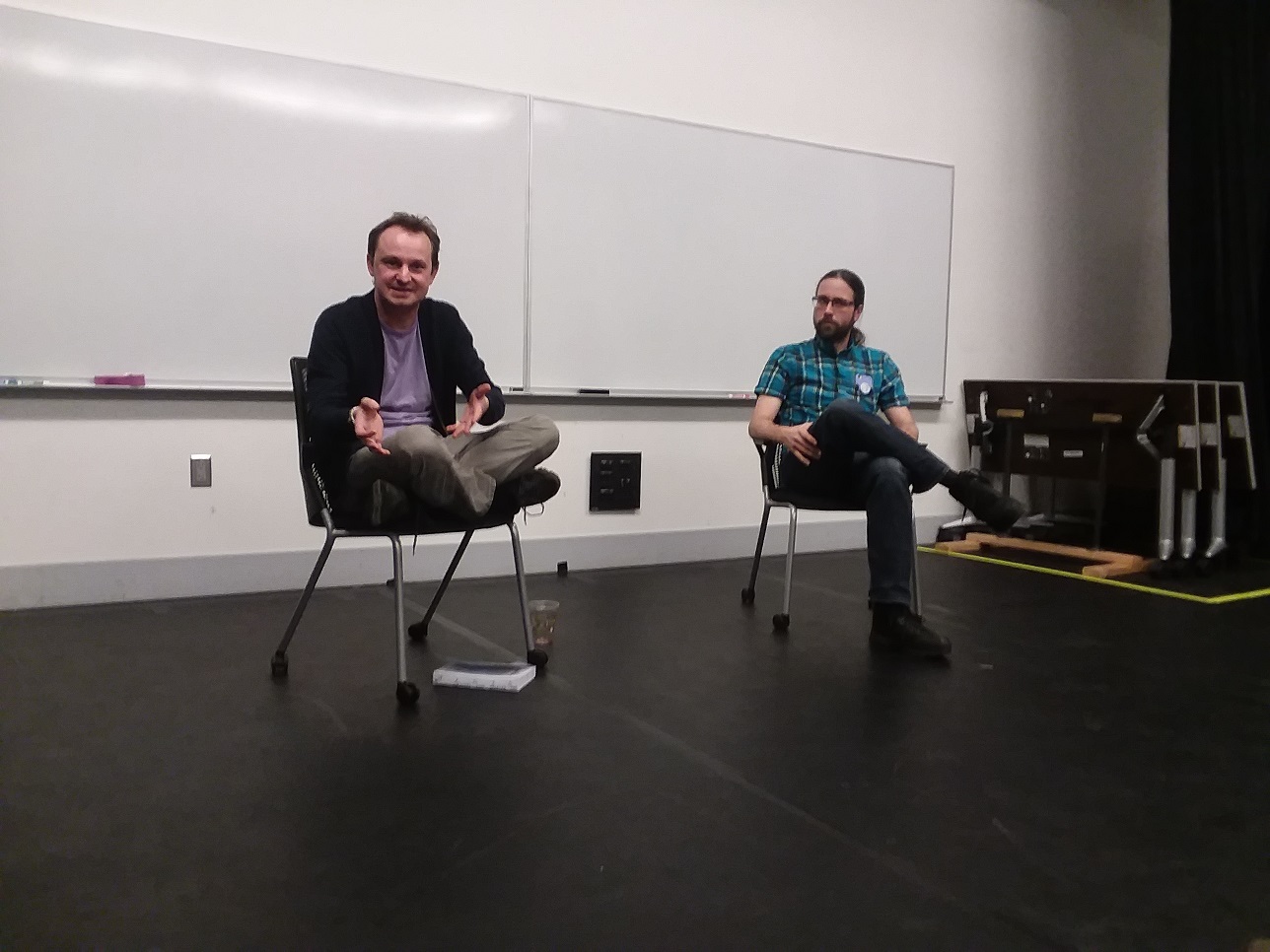 I have been sent a few photos from the Urbantasm tour to Hyde Park, Chicago in December 2018. It seems a bit surreal, revisiting a time less than four years ago, before Covid and insurrection and all of the other tumult of our times. This was a fun week, during which I made two trips to Chicago: a one-day blitz to read at the Tuesday Funk Reading Series, and then a return that weekend for events in Edgewater, Hyde Park, and Bridgeport. This event was hosted at the Reva and David Logan Center for the Arts, and was moderated by author M.L. Kennedy. I believe these photos were taken (or at least collected) by Sean Conley. I hope you enjoy them!
